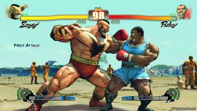 Название: Street Fighter 4 PC x360 PS3 Версия игры: Жанр: Fighting Мультиплеер: Интернет, локальная сеть Разработчик: Capcom Издатель: Capcom Издатель в России: 1C Дата выхода: 3 июля 2009 Сайты игры: http://www.streetfighter.com Минимум: 2 ГГц, 1 Гб, 256 Мб видео Рекомендуем: Core 2 Duo 2 ГГц, 2 Гб, 512 Мб видео Первый эпизод Street Fighter появился на аркадных автоматах более двадцати лет назад – в 1987 году. Однако наибольшую славу снискала вторая часть, развившаяся в самостоятельную серию. В течение трех лет она обрастала различными модификациями, общее количество которых перевалило за два десятка. Правда, отличить некоторые варианты друг от друга смогут, пожалуй, только сами разработчики. Но порой вносились и существенные дополнения. Например, Super Street Fighter 2 отличается от Street Fighter 2 расширенным набором персонажей. Во второй половине 1990-х компания Capcom продолжала активно развивать успешный бренд, буквально заваливая поклонников новыми эпизодами и различными их вариациями. В 1995-м вышла Street Fighter Alpha, годом позже дебютировала Street Fighter EX, а в 1997-м родилась Street Fighter 3. Персонажи серии также появлялись и в других играх компании – например, в X-Men vs. Street Fighter и Marvel vs. Capcom. Однако все это богатое наследие при разработке Street Fighter 4 осталось за бортом. Авторы сконцентрировались на главном и сделали потрясающий ремейк лучшей части серии. Street Fighter 4 – игра о драках во всем их красочном многообразии. Не о персонажах или каких-то придуманных событиях, а именно о стремительных красивых потасовках. Конечно, здесь есть ролики, посвященные героям и туманно намекающие на причины их участия в схватках, но стройная история все равно не вырисовывается. Да и сюжетный режим отсутствует как таковой. Вместо него – классическая аркадная кампания. Проходить Street Fighter 4 можно на восьми уровнях сложности, причем все они ощутимо отличаются друг от друга. Начинающему игроку не стоит забираться дальше Normal: если задрать планку выше, то для эффективного противостояния врагам потребуется виртуозное владение сложными суперприемами, а это нужно долго и упорно тренировать. И дело тут не только в чисто технических трудностях (реализовать некоторые комбинации на обычном контроллере весьма проблематично), но и в стилях бойцов. Персонажи отличаются друг от друга как черное от сладкого. Если вам удалось досконально изучить все особенности одного героя, это вовсе не означает, что вы сможете сносно драться в шкуре другого. Так, играя за Рю, нужно постоянно двигаться и контратаковать, в роли Гайла необходимо в основном защищаться, а в шкуре нового персонажа Авеля – стараться максимально сократить дистанцию, чтобы провести коронный сокрушительный бросок. То же самое верно и для соперников. Практически к каждому из них приходится искать индивидуальный подход и методом проб и ошибок узнавать, как можно и как нельзя себя вести. К тому же Авелю крайне не рекомендуется приближаться вплотную, а вот держаться подальше от Далсима, наоборот, бесполезно и небезопасно. Зверюгу Бланку лучше не атаковать с воздуха, а с сумоистом Хондой, напротив, не справиться без прыжков. Благодаря немыслимому многообразию тактических решений Street Fighter 4 можно изучать годами, периодически открывая для себя что-то новое. Тем не менее многодневные тренировки не являются обязательным условием для интересной игры. Достаточно найти соперника, равного вам по силам, и бой получ